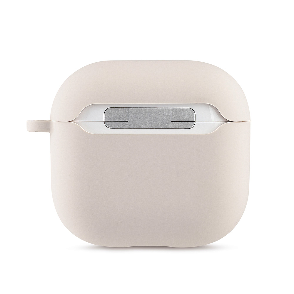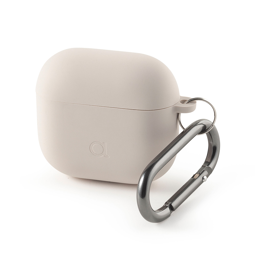 Include un moschettone pratico ed elegante in alluminio color canna di fucile, che permette di agganciare gli AirPods alla borsa, allo zaino e al passante per la cintura.