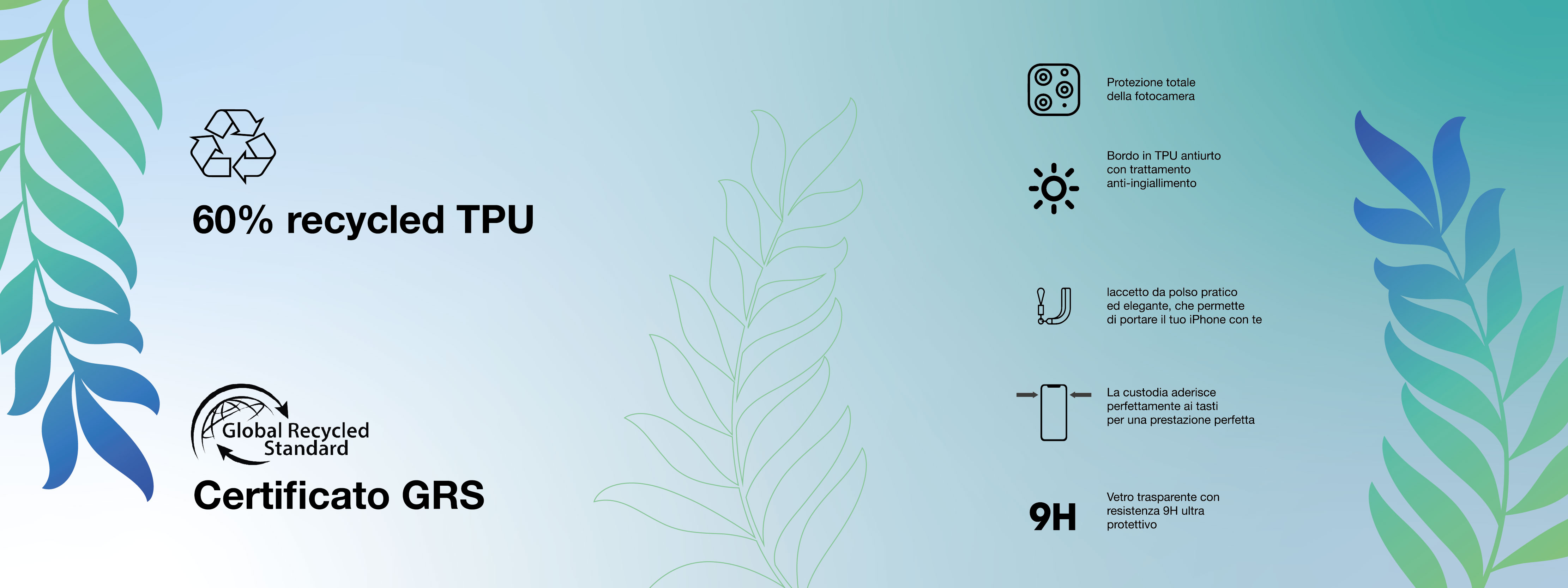 • Materiali: vetro e TPU riciclato al 60%