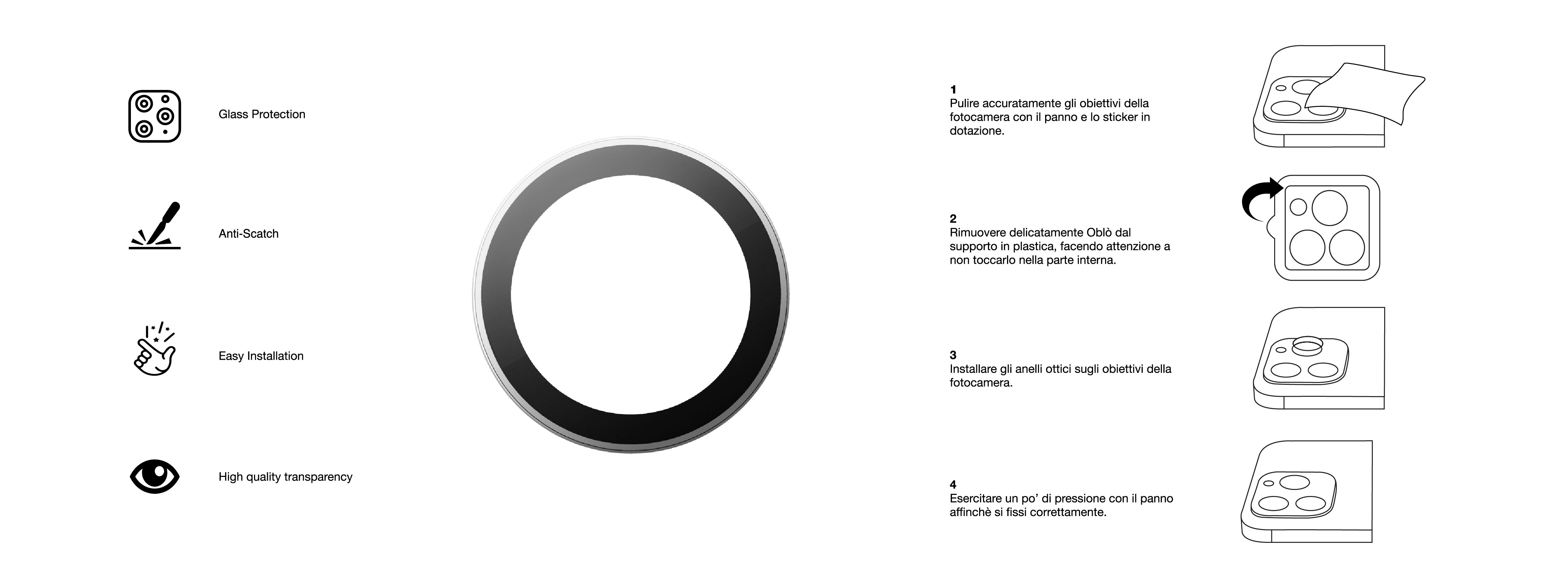 Sottile e ultra resistente, Oblò è realizzato in vetro temperato e protegge la fotocamera posteriore del tuo iPhone da urti e graffi. Grazie al suo design di precisione, alla sua trasparenza e ai suoi bordi interni oscurati, Oblò mantiene inalterata la qualità delle tue foto e dei tuoi video, senza ridurre o filtrare la luce sia di giorno che di notte. Facile da installare e da rimuovere, questa protezione per la fotocamera dell'iPhone è un prezioso alleato per ogni appassionato di fotografia.