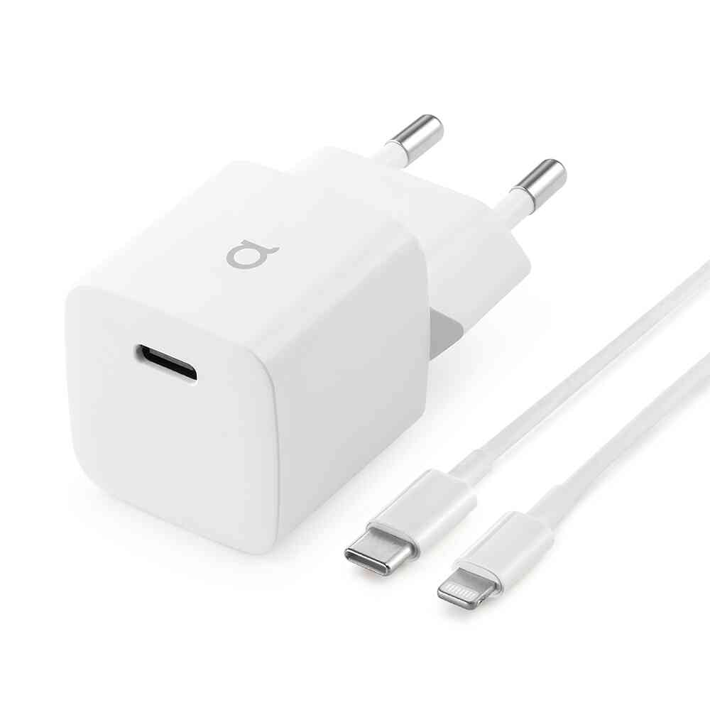 Mav2 di aiino, l'alimentatore da muro 25W GaN USB-C, è perfetto per ricaricare velocemente e facilmente i tuoi dispositivi preferiti negli spazi più ristretti, ovunque tu sia. Realizzato per sfruttare al meglio la ricarica rapida degli ultimi modelli di iPhone e iPad, questo caricatore da muro ultracompatto è l'accessorio ideale per la casa, l'ufficio e i viaggi. Grazie alle sue dimensioni minime, è possibile riporre Mav2 anche negli spazi di lavoro o nelle borse più piccole e collegarlo alle prese a muro più scomode.